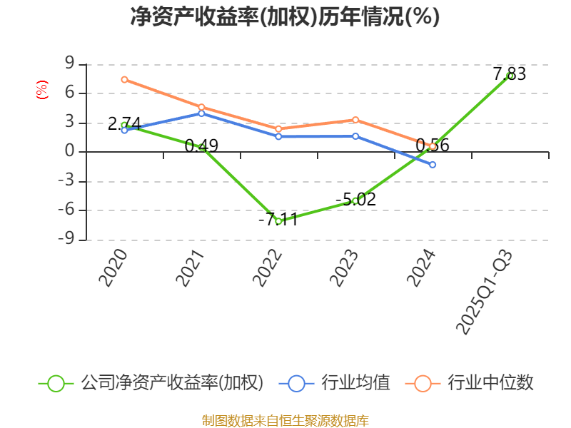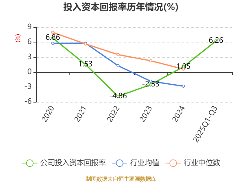 盈利能力方面, 2025年前三季度公司加权平均净资产收益率为7.83%,同比上升12.93个百分点。公司2025年前三季度投入资本回报率为6.26%,较上年同期上升9.23个百分点。