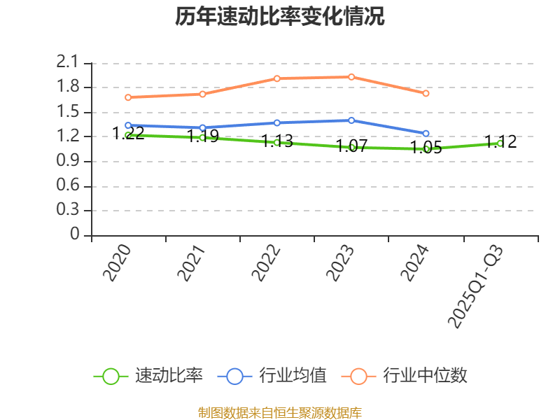 2025年前三季度,公司流动比率为1.35,速动比率为1.12。