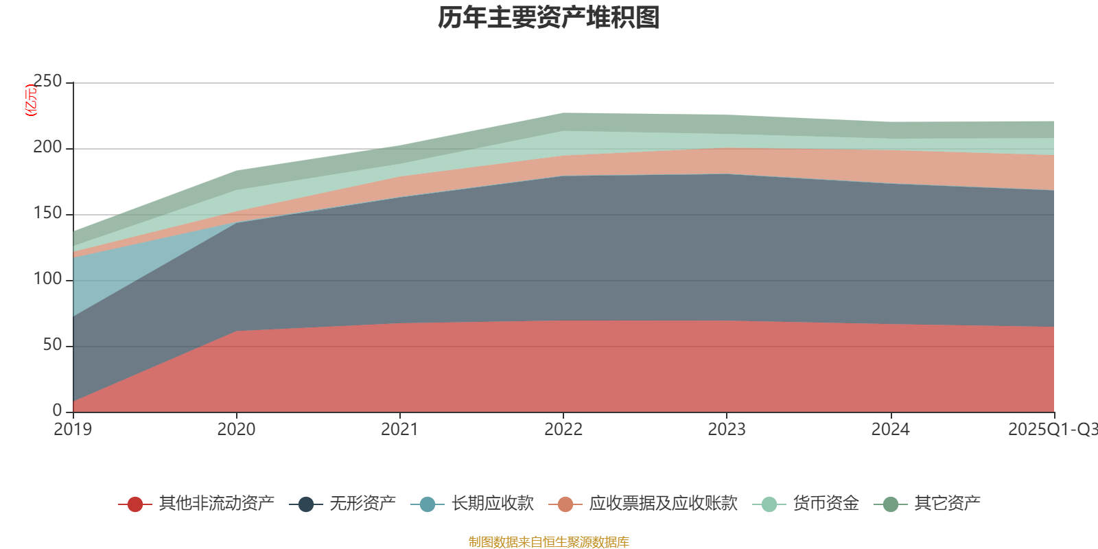 资产重大变化方面,截至2025年三季度末,公司货币资金较上年末增加47.94%,占公司总资产比重上升1.88个百分点;无形资产较上年末减少2.92%,占公司总资产比重下降1.53个百分点;其他非流动资产较上年末减少3.12%,占公司总资产比重下降1.02个百分点;应收票据及应收账款较上年末增加5.4%,占公司总资产比重上升0.59个百分点。