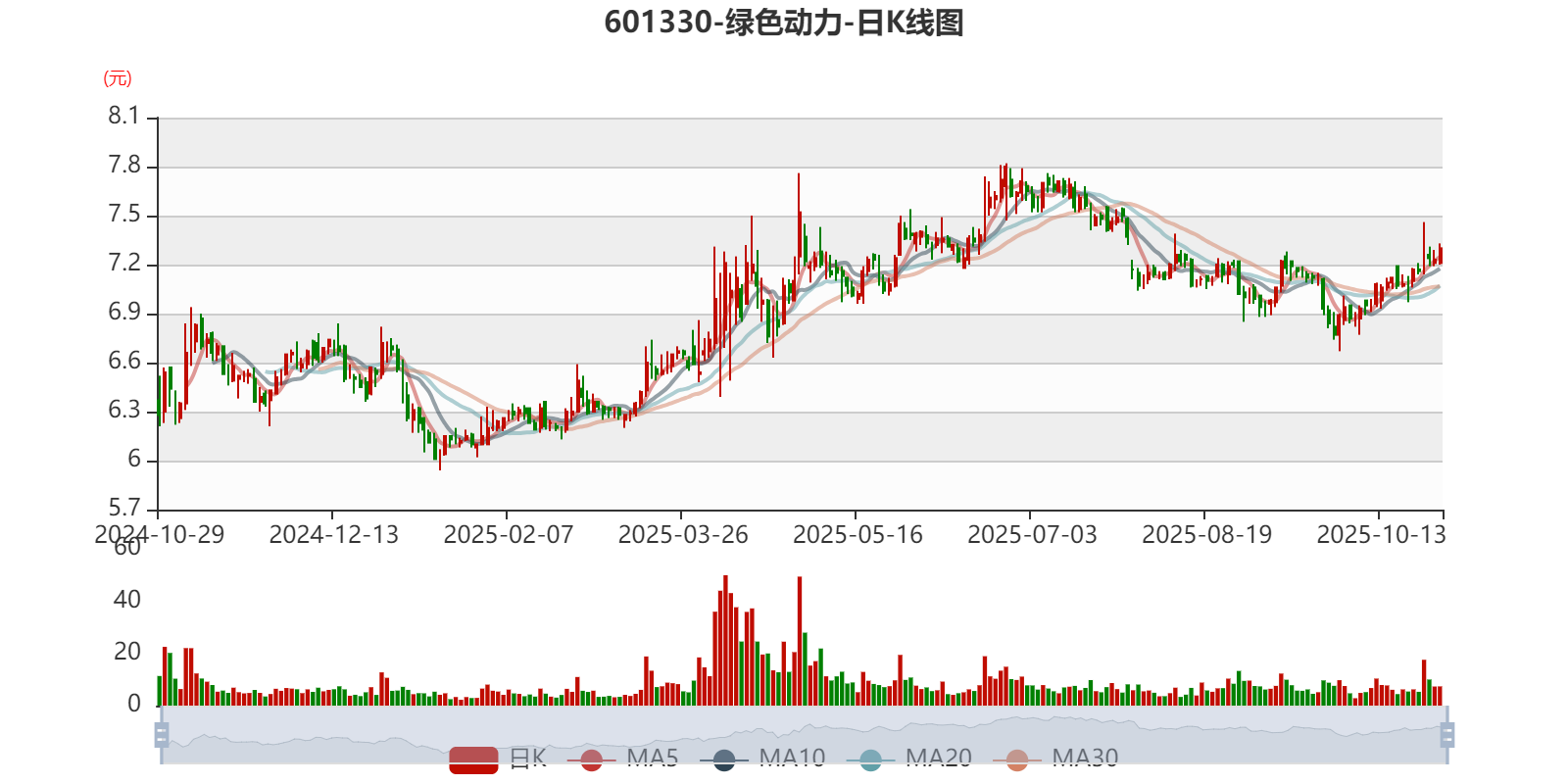 以10月28日收盘价计算,绿色动力目前市盈率(TTM)约为14.37倍,市净率(LF)约1.21倍,市销率(TTM)约2.96倍。