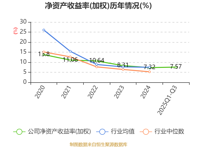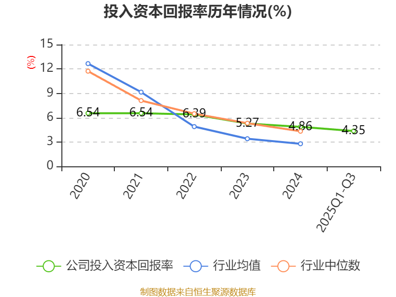 盈利能力方面, 2025年前三季度公司加权平均净资产收益率为7.57%,同比上升1.27个百分点。公司2025年前三季度投入资本回报率为4.35%,较上年同期上升0.35个百分点。