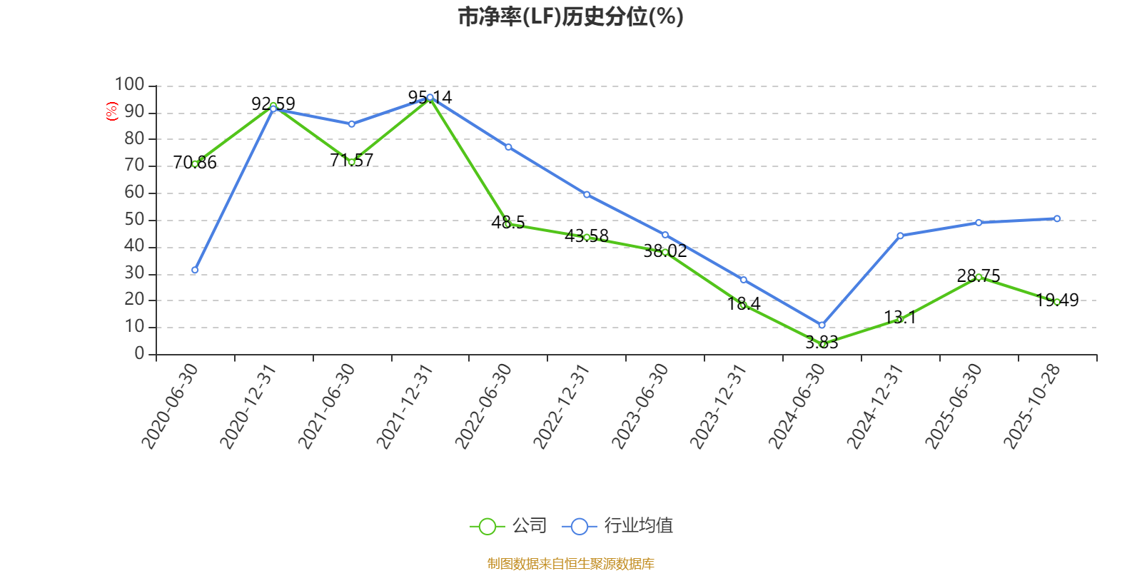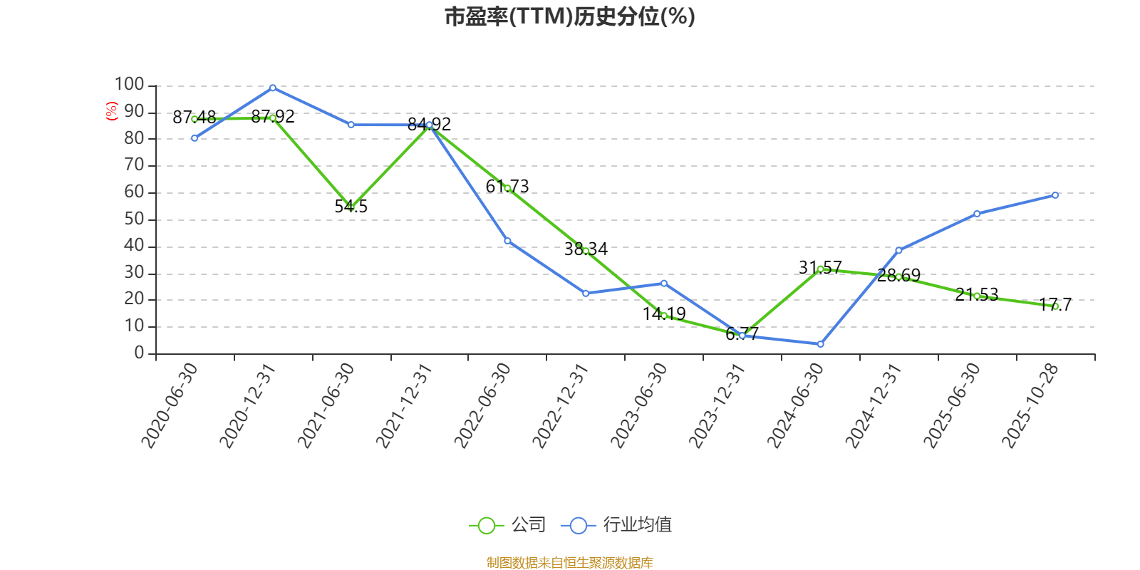 市盈率、市净率为负时,不显示当期分位数,会导致折线图中断。