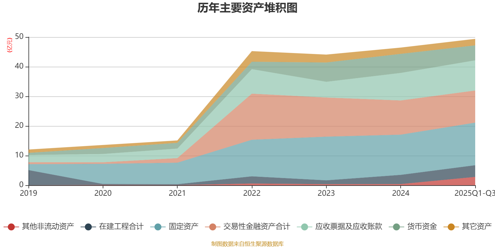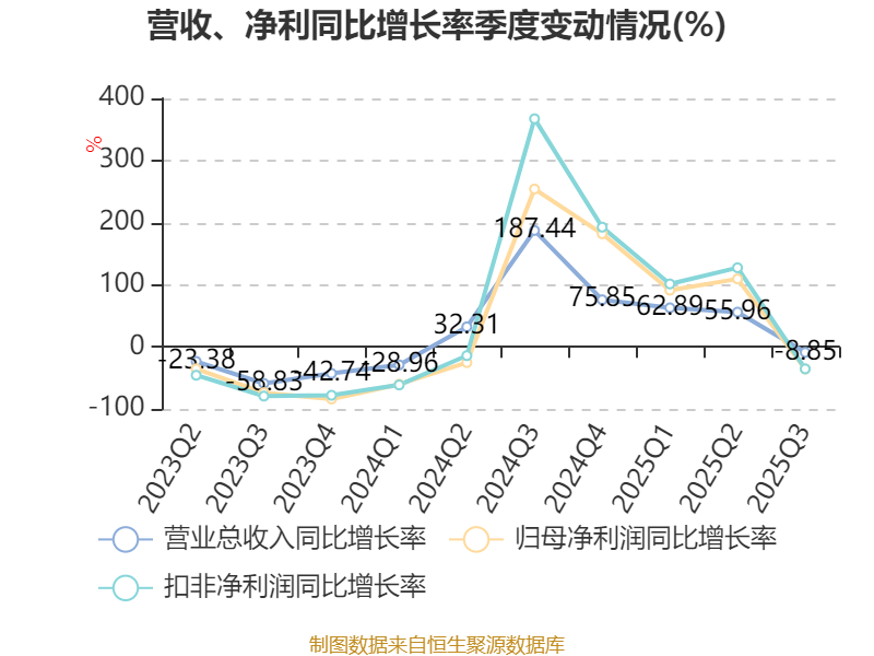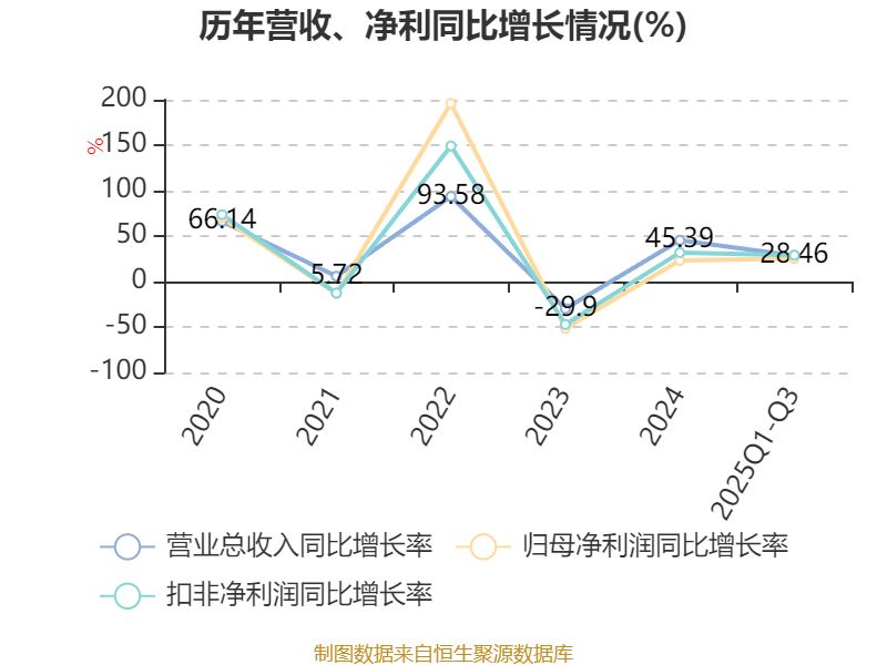 资产重大变化方面,截至2025年三季度末,公司其他非流动资产较上年末增加616.75%,占公司总资产比重上升4.84个百分点;货币资金较上年末减少21.38%,占公司总资产比重下降3.61个百分点;交易性金融资产合计较上年末减少6.06%,占公司总资产比重下降2.91个百分点;在建工程合计较上年末增加26.63%,占公司总资产比重上升1.27个百分点。