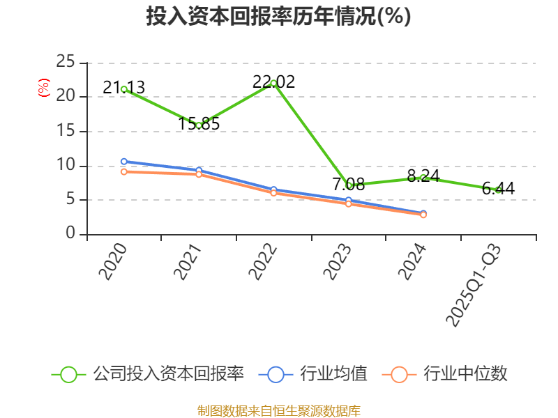 盈利能力方面, 2025年前三季度公司加权平均净资产收益率为6.44%,同比上升0.87个百分点。公司2025年前三季度投入资本回报率为6.44%,较上年同期上升1.06个百分点。