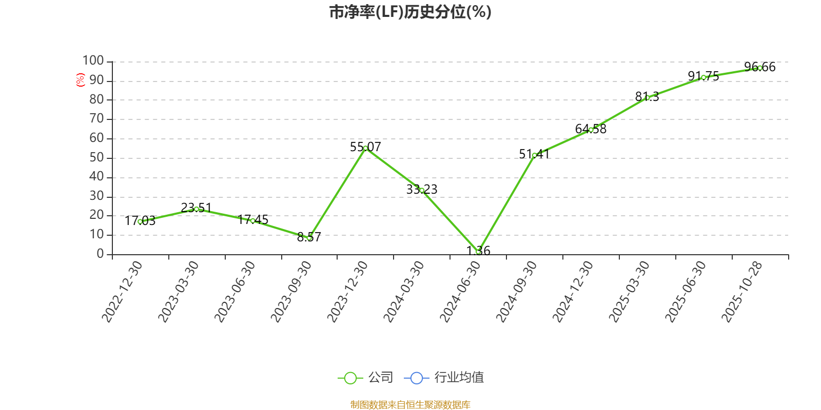 市盈率、市净率为负时,不显示当期分位数,会导致折线图中断。