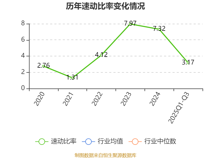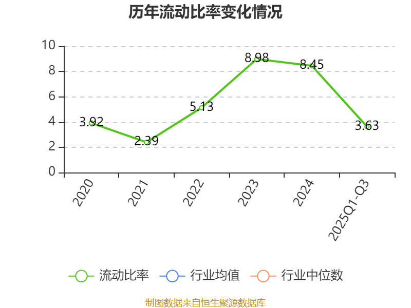 2025年前三季度,公司流动比率为3.63,速动比率为3.17。
