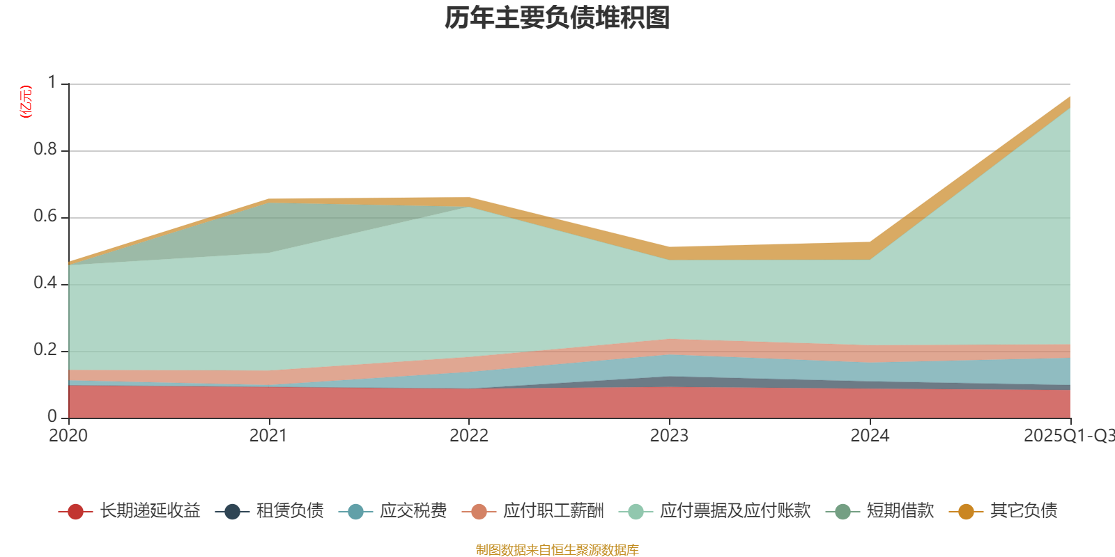 负债重大变化方面,截至2025年三季度末,公司应付票据及应付账款较上年末增加176.61%,占公司总资产比重上升5.75个百分点;应付职工薪酬较上年末减少22.09%,占公司总资产比重下降0.28个百分点;长期递延收益较上年末减少4.67%,占公司总资产比重下降0.26个百分点;其他流动负债较上年末减少97.38%,占公司总资产比重下降0.25个百分点。