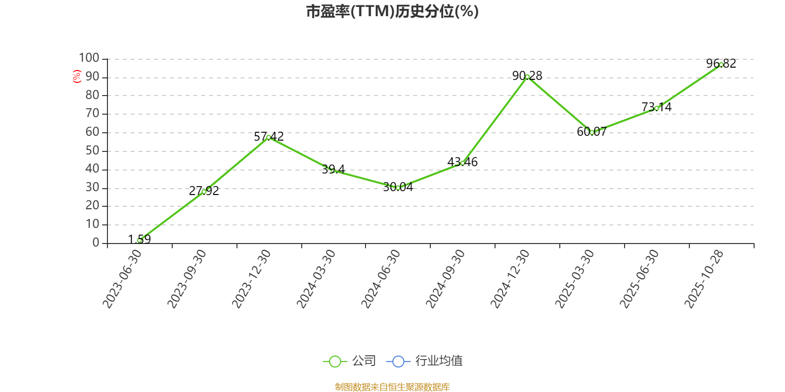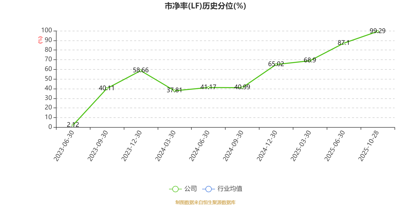 市盈率、市净率为负时,不显示当期分位数,会导致折线图中断。