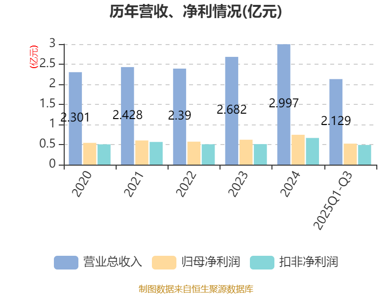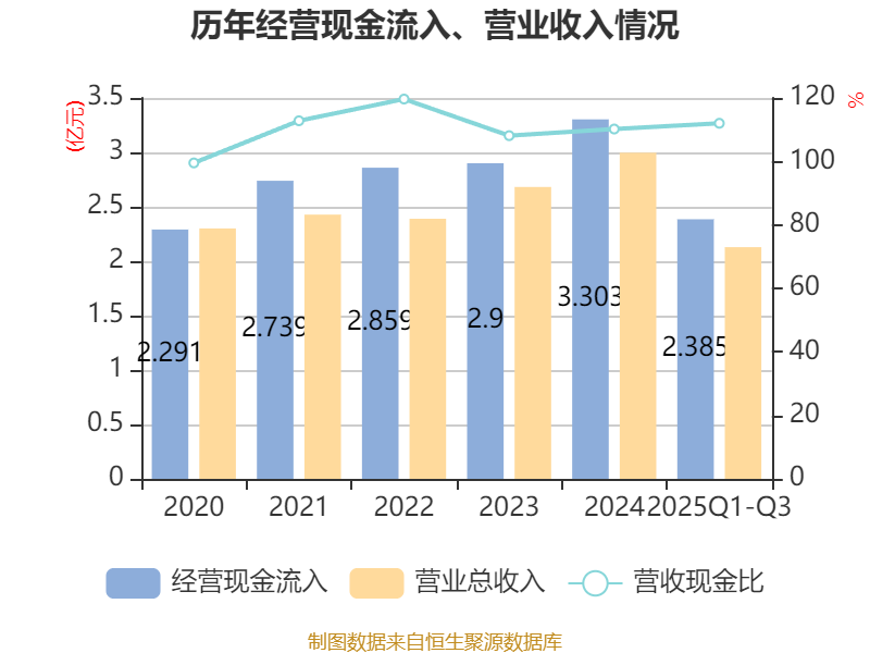 2025年前三季度,公司流动比率为2.86,速动比率为2.27。