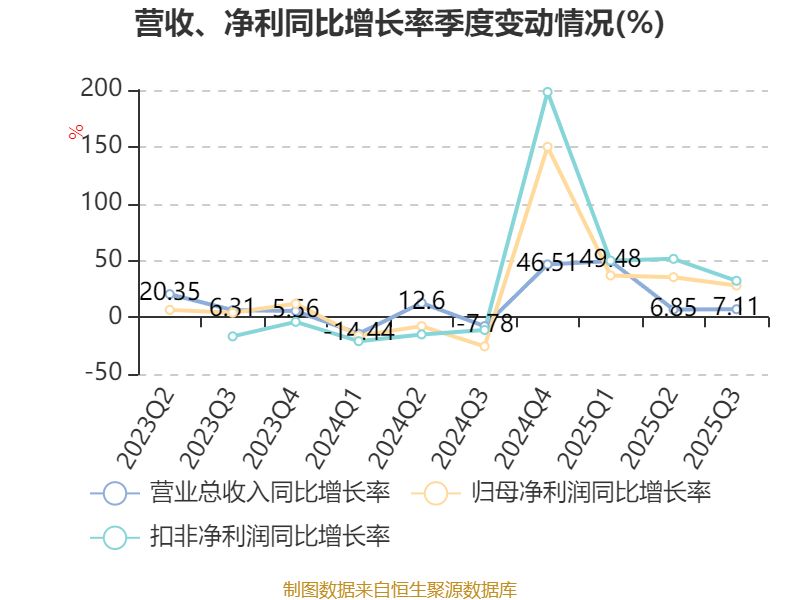 资产重大变化方面,截至2025年三季度末,公司交易性金融资产合计较上年末减少31.28%,占公司总资产比重下降4.28个百分点;货币资金较上年末减少32.32%,占公司总资产比重下降3.19个百分点;在建工程合计较上年末增加111.36%,占公司总资产比重上升2.61个百分点;预付款项较上年末增加423.5%,占公司总资产比重上升2.5个百分点。