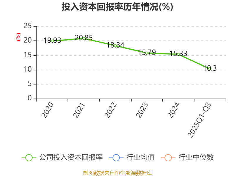 盈利能力方面, 2025年前三季度公司加权平均净资产收益率为10.26%,同比上升1.9个百分点。公司2025年前三季度投入资本回报率为10.3%,较上年同期上升1.87个百分点。