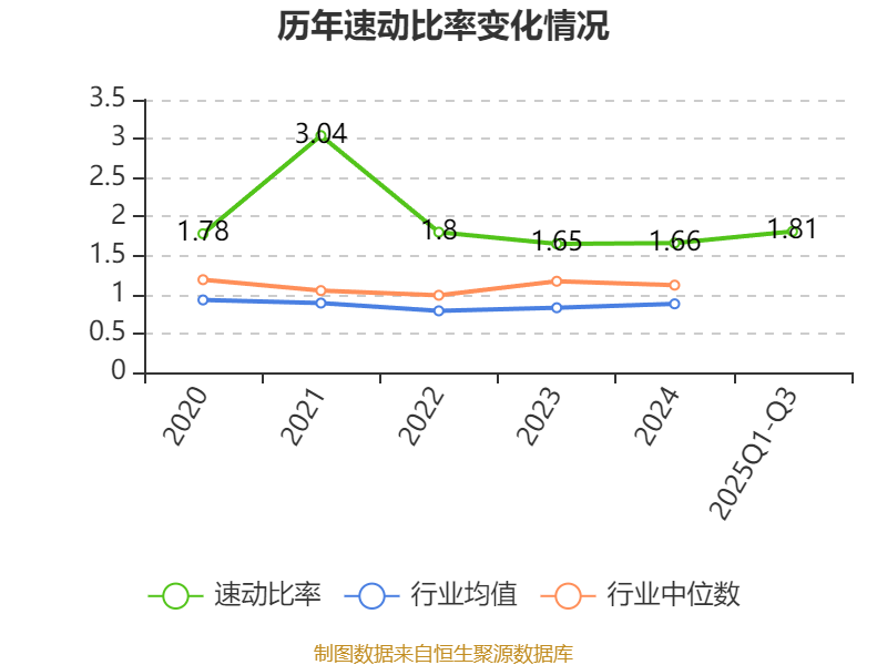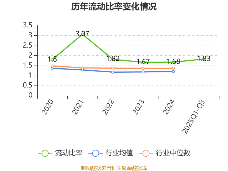 2025年前三季度,公司流动比率为1.83,速动比率为1.81。