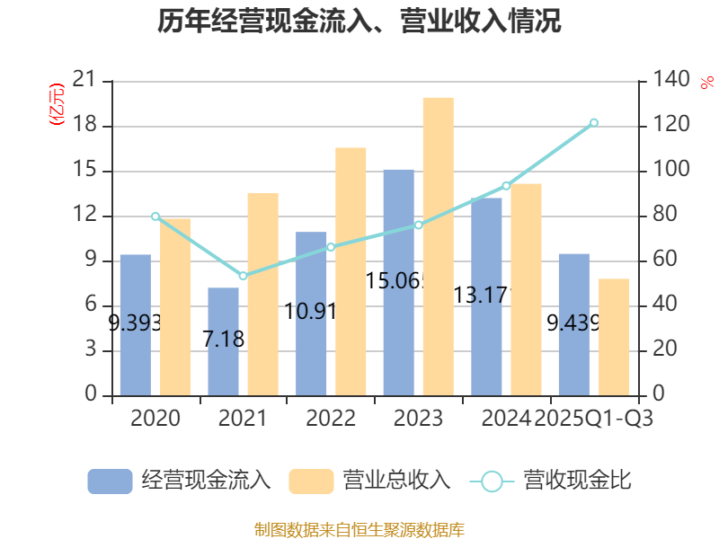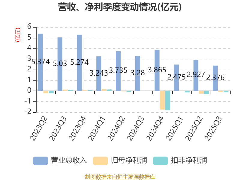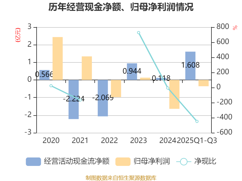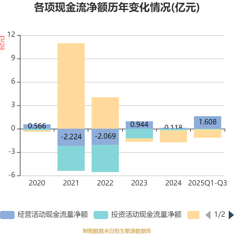 2025年前三季度,公司经营活动现金流净额为1.61亿元,同比增加1.77亿元;筹资活动现金流净额-1.09亿元,同比减少4372.03万元;投资活动现金流净额-812.17万元,上年同期为-1786万元。