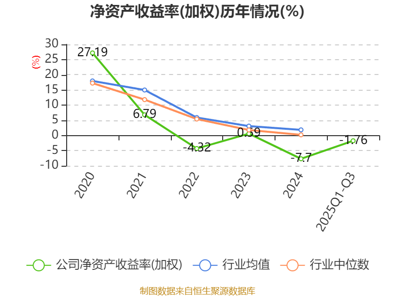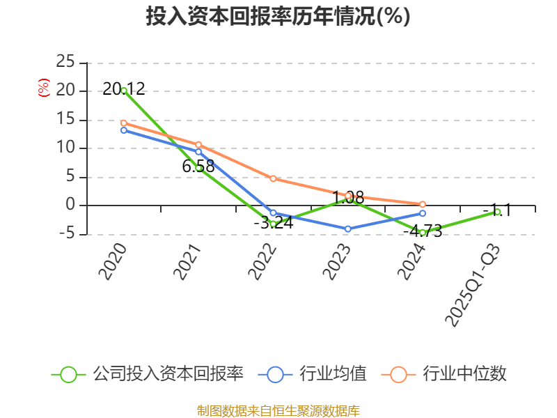 盈利能力方面, 2025年前三季度公司加权平均净资产收益率为-1.76%,同比下降2.25个百分点。公司2025年前三季度投入资本回报率为-1.1%,较上年同期下降2.04个百分点。