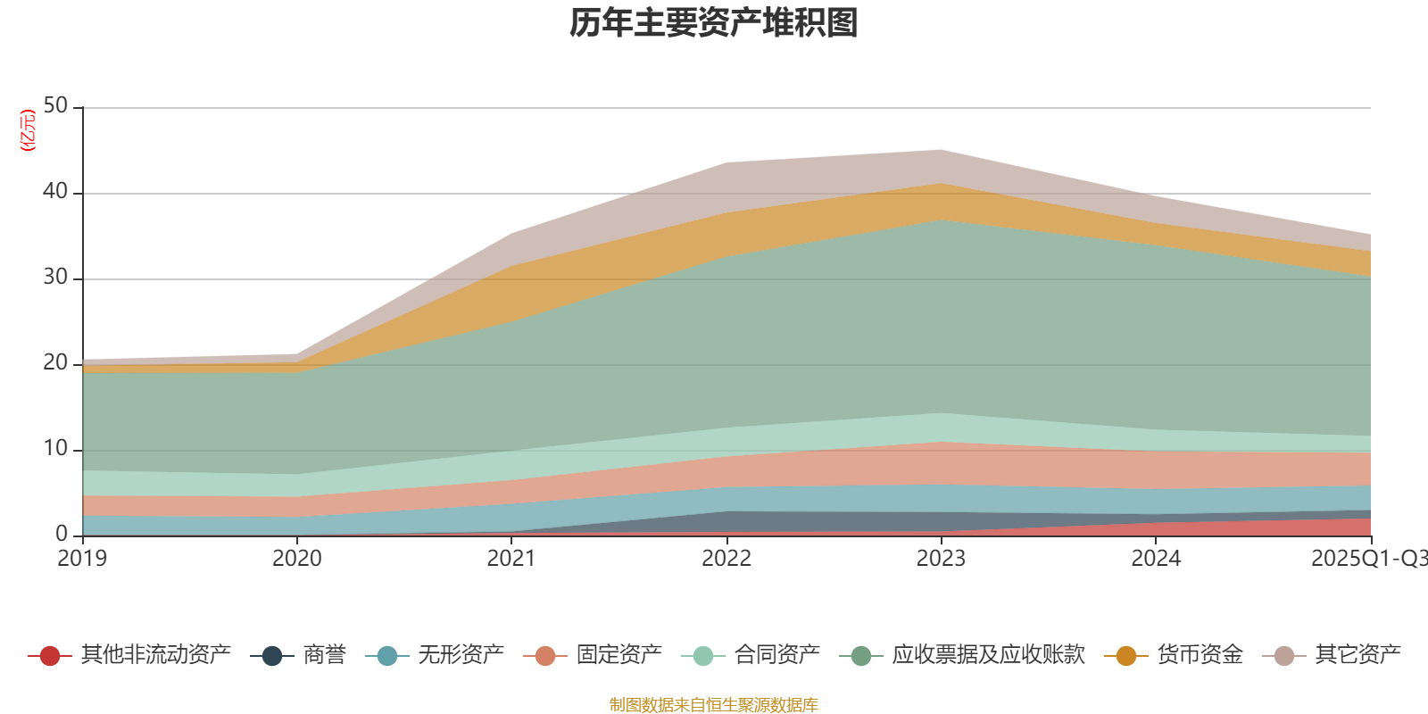 资产重大变化方面,截至2025年三季度末,公司使用权资产较上年末减少85.48%,占公司总资产比重下降2.53个百分点;货币资金较上年末增加14.87%,占公司总资产比重上升1.91个百分点;其他非流动资产较上年末增加33.6%,占公司总资产比重上升1.89个百分点;应收票据及应收账款较上年末减少13.64%,占公司总资产比重下降1.47个百分点。