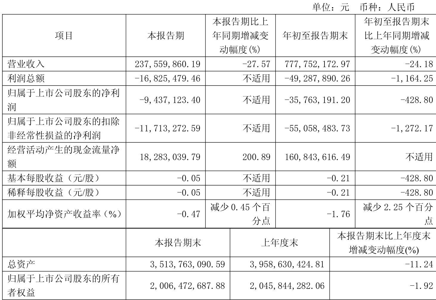 中证智能财讯四方新材(605122)10月29日披露2025年第三季度报告。前三季度公司实现营业总收入7.78亿元,同比下降24.18%;归母净利润亏损3576.32万元,上年同期盈利1087.68万元;扣非净利润亏损5505.85万元,上年同期盈利469.72万元;经营活动产生的现金流量净额为1.61亿元,上年同期为-1634.52万元;报告期内,四方新材基本每股收益为-0.21元,加权平均净资产收益率为-1.76%。