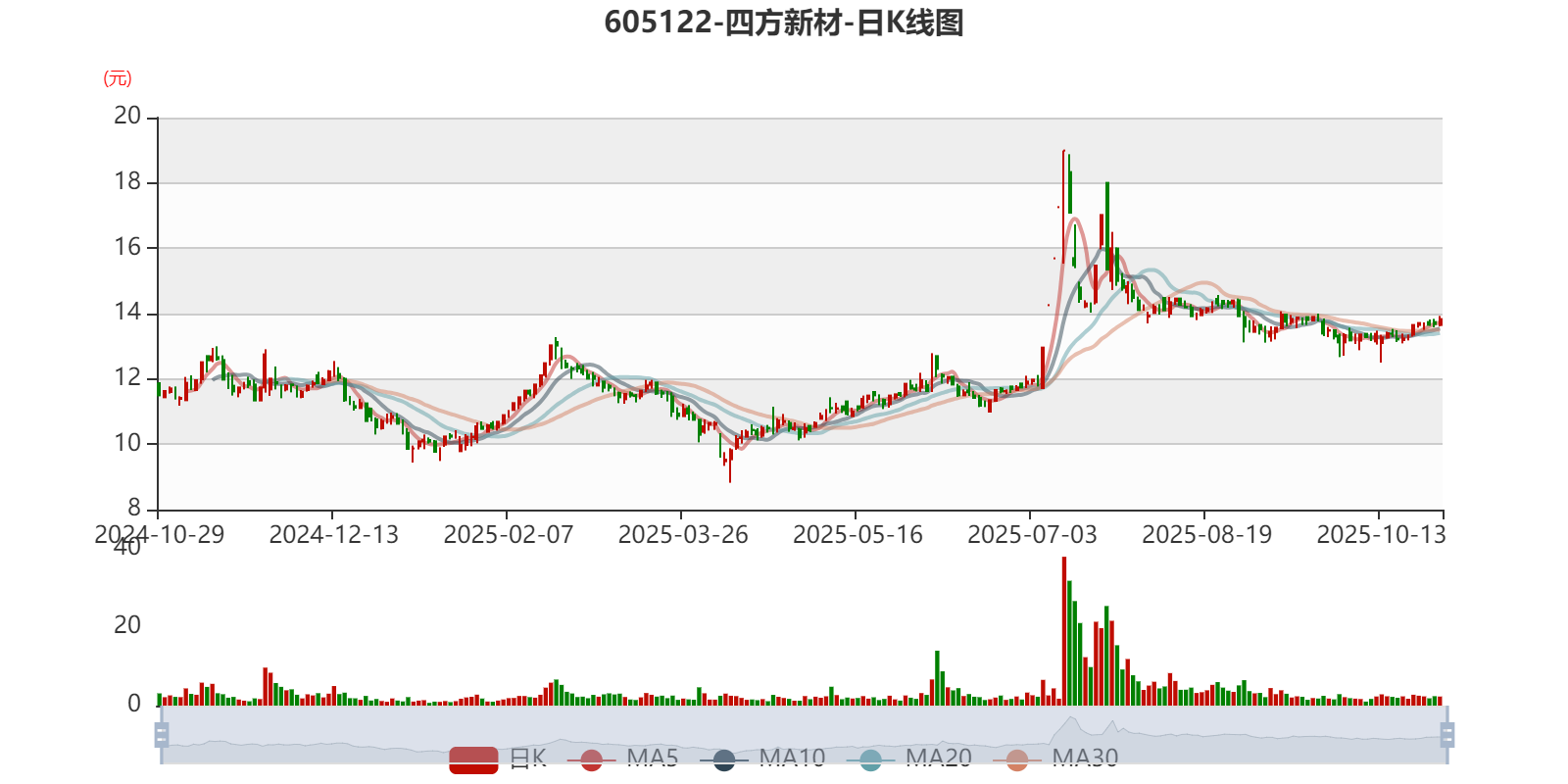 以10月28日收盘价计算,四方新材目前市盈率(TTM)约为-11.31倍,市净率(LF)约1.19倍,市销率(TTM)约2.05倍。