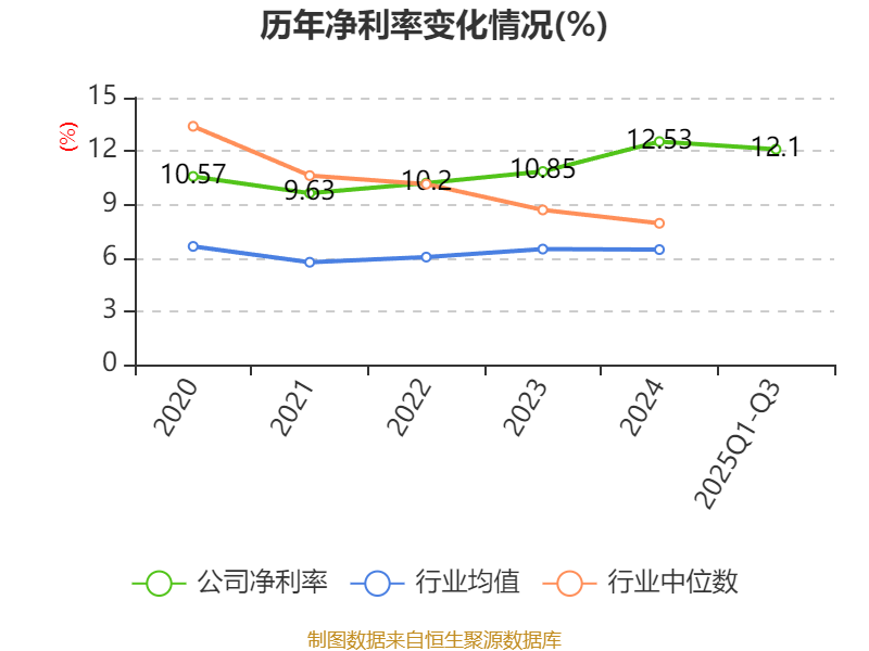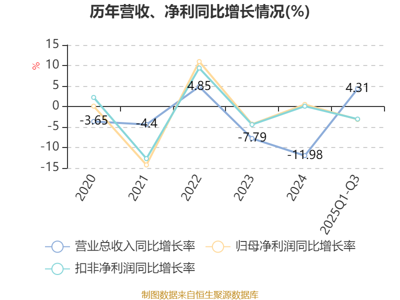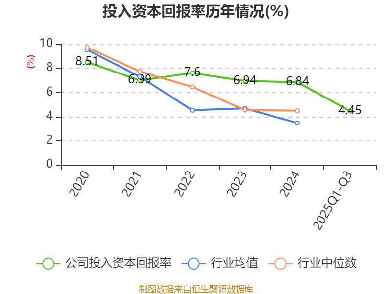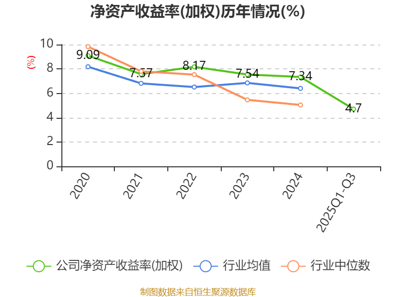 盈利能力方面, 2025年前三季度公司加权平均净资产收益率为4.7%,同比下降0.21个百分点。公司2025年前三季度投入资本回报率为4.45%,较上年同期下降0.23个百分点。