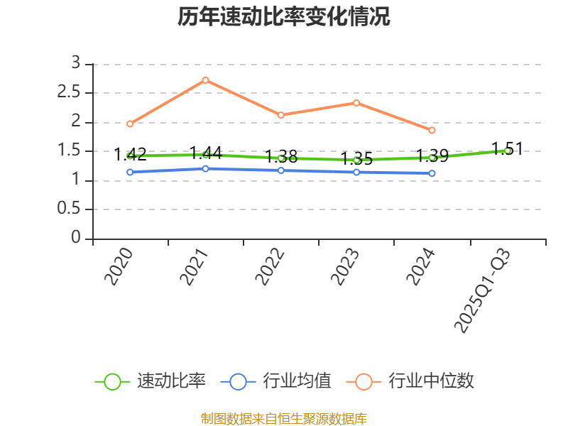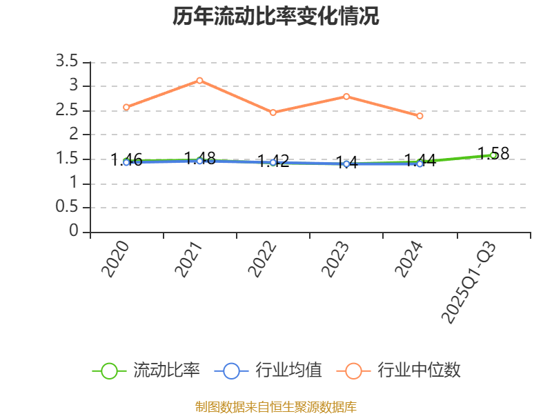 2025年前三季度,公司流动比率为1.58,速动比率为1.51。