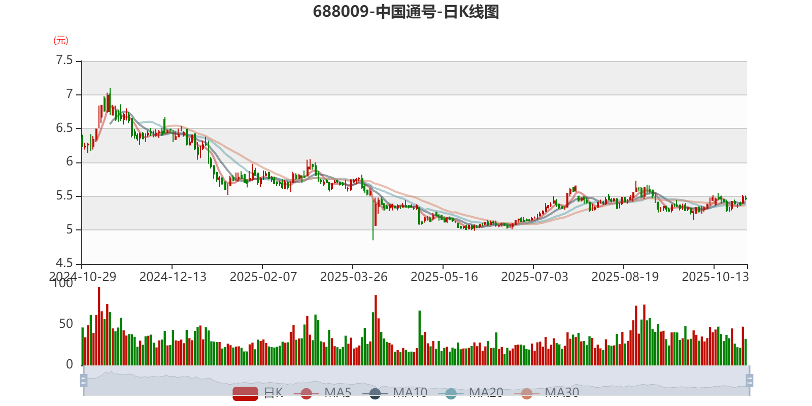 中证智能财讯中国通号(688009)10月29日披露2025年第三季度报告。前三季度公司实现营业总收入218.42亿元,同比增长4.31%;归母净利润22.84亿元,同比下降3.16%;扣非净利润22.03亿元,同比下降3.07%;经营活动产生的现金流量净额为-37.5亿元,上年同期为34.01亿元;报告期内,中国通号基本每股收益为0.22元,加权平均净资产收益率为4.70%。