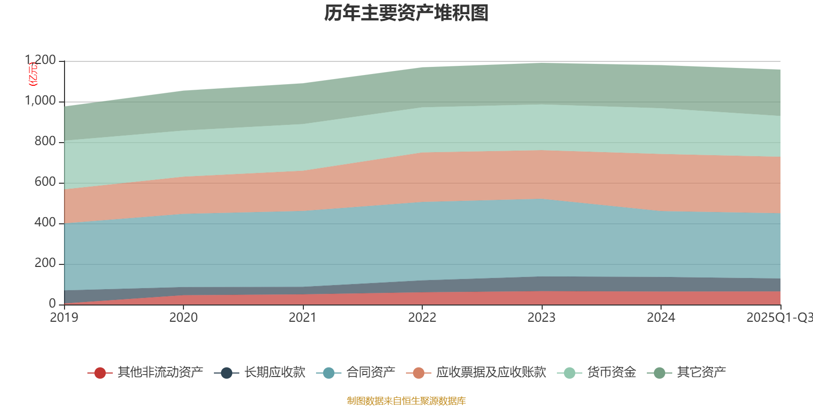 资产重大变化方面,截至2025年三季度末,公司货币资金较上年末减少11.06%,占公司总资产比重下降1.79个百分点;存货较上年末增加19.12%,占公司总资产比重上升0.63个百分点;长期应收款较上年末减少11.4%,占公司总资产比重下降0.59个百分点;预付款项较上年末增加27.22%,占公司总资产比重上升0.29个百分点。