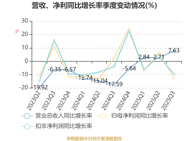 负债重大变化方面,截至2025年三季度末,公司应付票据及应付账款较上年末减少11.13%,占公司总资产比重下降3.56个百分点;长期借款较上年末增加121.42%,占公司总资产比重上升3.55个百分点;吸收存款及同业存款较上年末减少63.3%,占公司总资产比重下降1.59个百分点;应交税费较上年末减少30.42%,占公司总资产比重下降0.32个百分点。