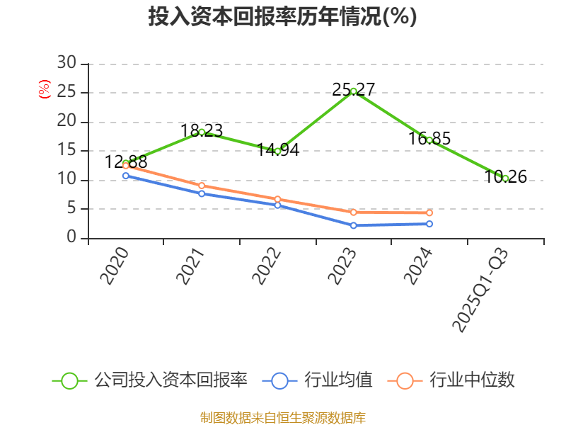 盈利能力方面, 2025年前三季度公司加权平均净资产收益率为11.97%,同比下降1.84个百分点。公司2025年前三季度投入资本回报率为10.26%,较上年同期下降2.82个百分点。