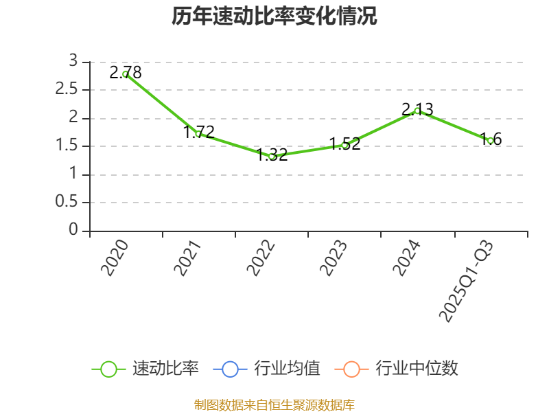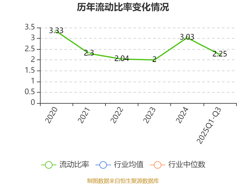 2025年前三季度,公司流动比率为2.25,速动比率为1.6。