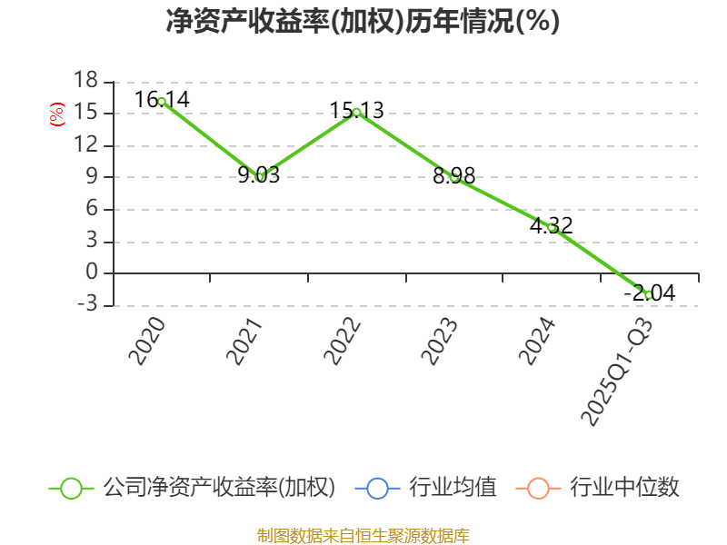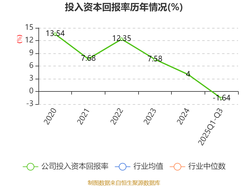 盈利能力方面, 2025年前三季度公司加权平均净资产收益率为-2.04%,同比下降4.45个百分点。公司2025年前三季度投入资本回报率为-1.64%,较上年同期下降3.86个百分点。