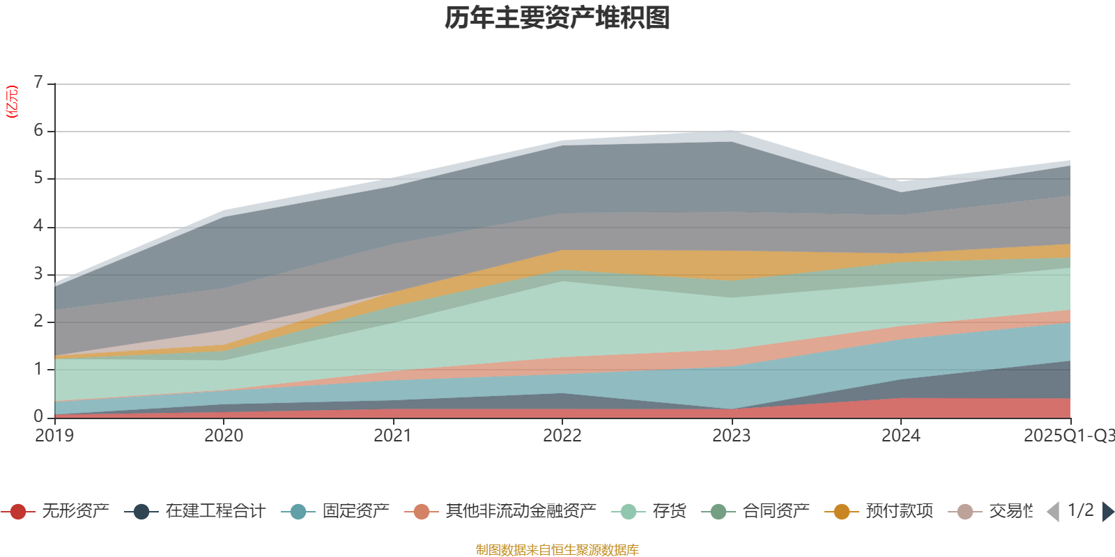 资产重大变化方面,截至2025年三季度末,公司在建工程合计较上年末增加101.68%,占公司总资产比重上升6.71个百分点;合同资产较上年末减少52.75%,占公司总资产比重下降5.2个百分点;应收款项融资较上年末减少97.21%,占公司总资产比重下降2.52个百分点;应收票据及应收账款较上年末增加25.23%,占公司总资产比重上升2.44个百分点。