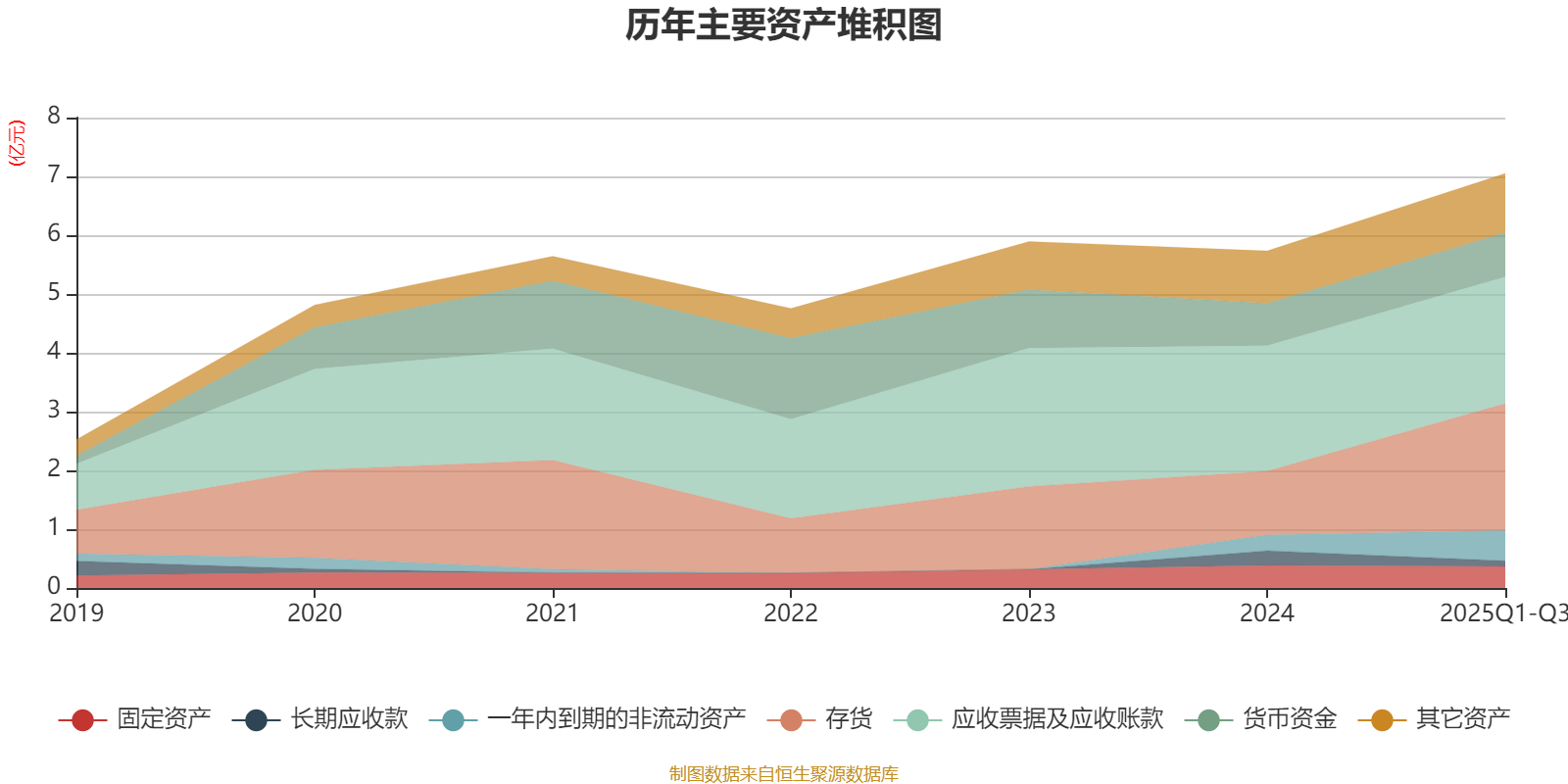 资产重大变化方面,截至2025年三季度末,公司存货较上年末增加98.99%,占公司总资产比重上升11.7个百分点;应收票据及应收账款较上年末增加1.06%,占公司总资产比重下降6.62个百分点;长期应收款较上年末减少61.71%,占公司总资产比重下降3.01个百分点;一年内到期的非流动资产较上年末增加90.19%,占公司总资产比重上升2.58个百分点。