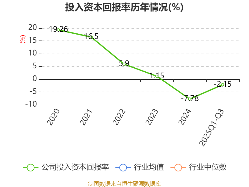 盈利能力方面, 2025年前三季度公司加权平均净资产收益率为-3.37%,同比上升5.15个百分点。公司2025年前三季度投入资本回报率为-2.15%,较上年同期上升4.42个百分点。