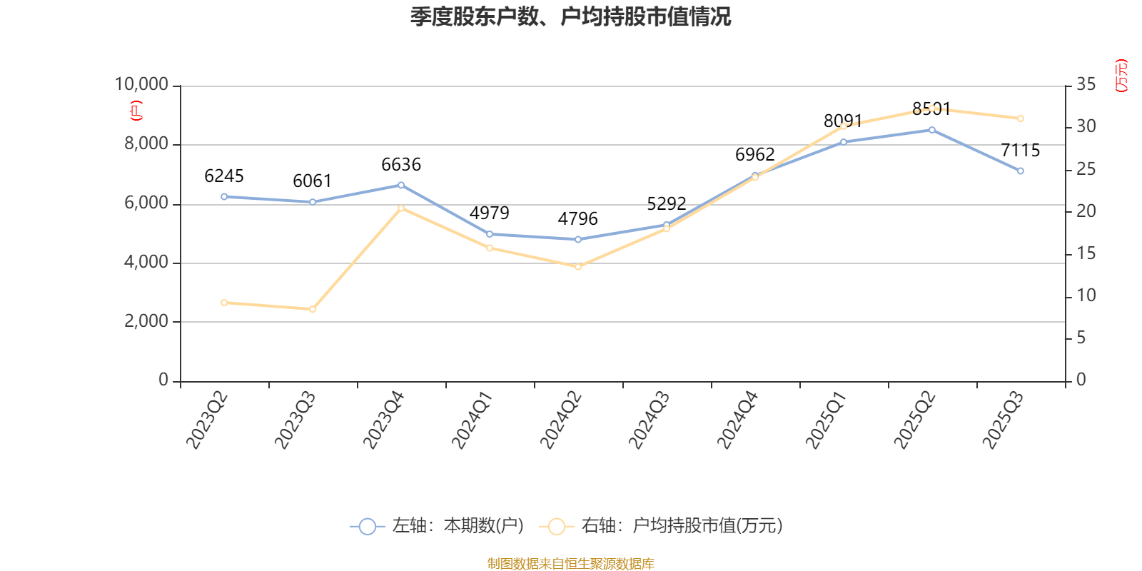 三季报显示,2025年三季度末的公司十大流通股东中,新进股东为杨豪杰、裴国利、刘清华、吴伟刚,取代了二季度末的韩钟伟、朱圣华、劳庆丰、河南众诚企业孵化器有限公司。在具体持股比例上,吴程锋持股有所上升,贾晓巍持股有所下降。