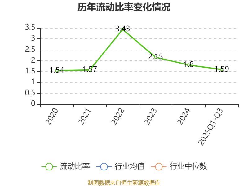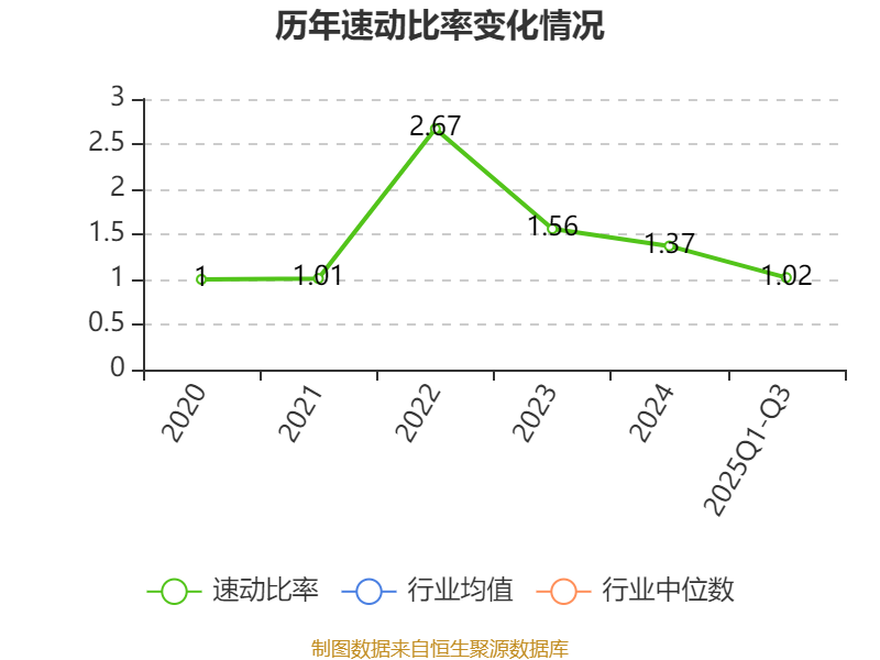 2025年前三季度,公司流动比率为1.59,速动比率为1.02。