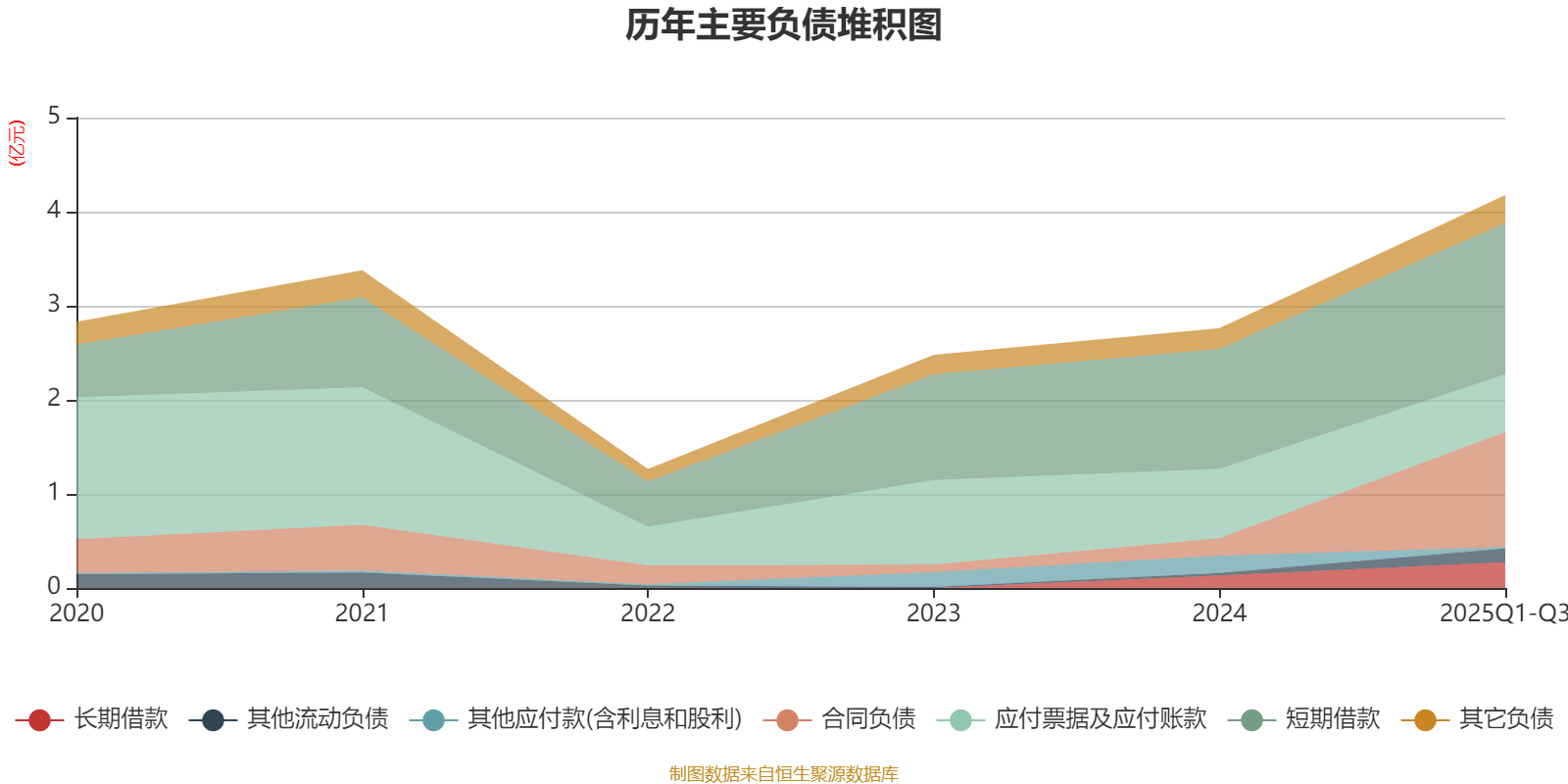 负债重大变化方面,截至2025年三季度末,公司合同负债较上年末增加564.45%,占公司总资产比重上升14.12个百分点;应付票据及应付账款较上年末减少16.91%,占公司总资产比重下降4.18个百分点;其他应付款(含利息和股利)较上年末减少91.48%,占公司总资产比重下降3.03个百分点;其他流动负债较上年末增加513.74%,占公司总资产比重上升1.66个百分点。