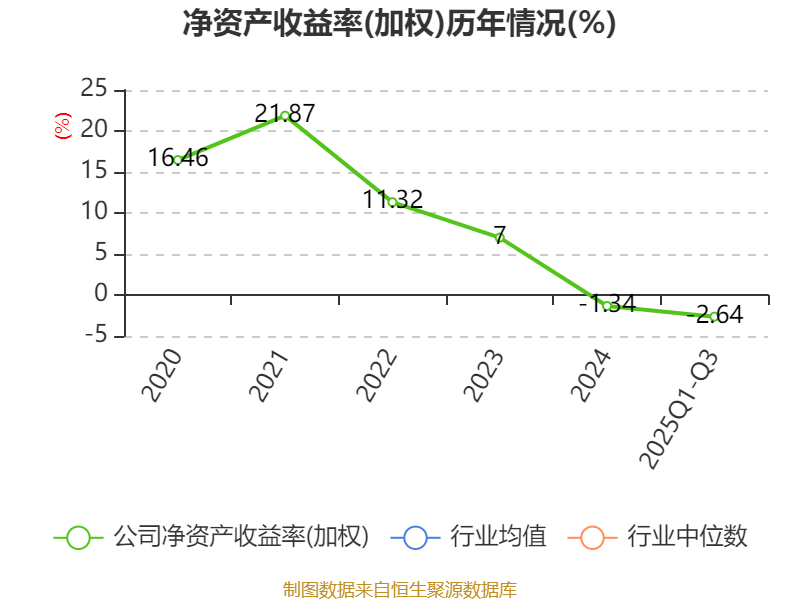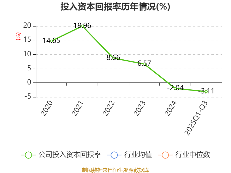 盈利能力方面, 2025年前三季度公司加权平均净资产收益率为-2.64%,同比下降1.27个百分点。公司2025年前三季度投入资本回报率为-3.11%,较上年同期下降1.19个百分点。
