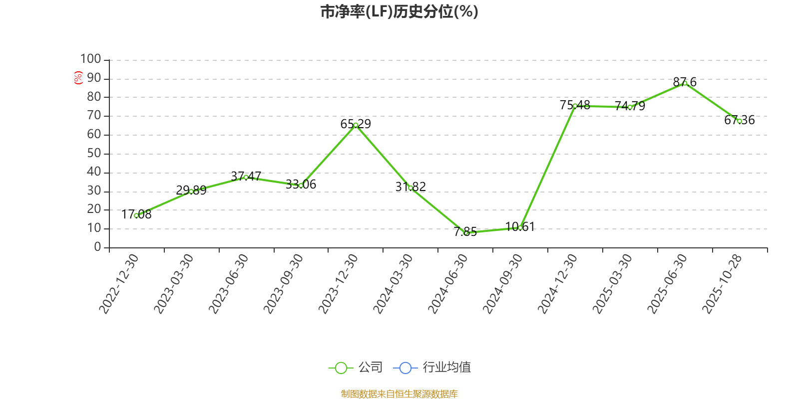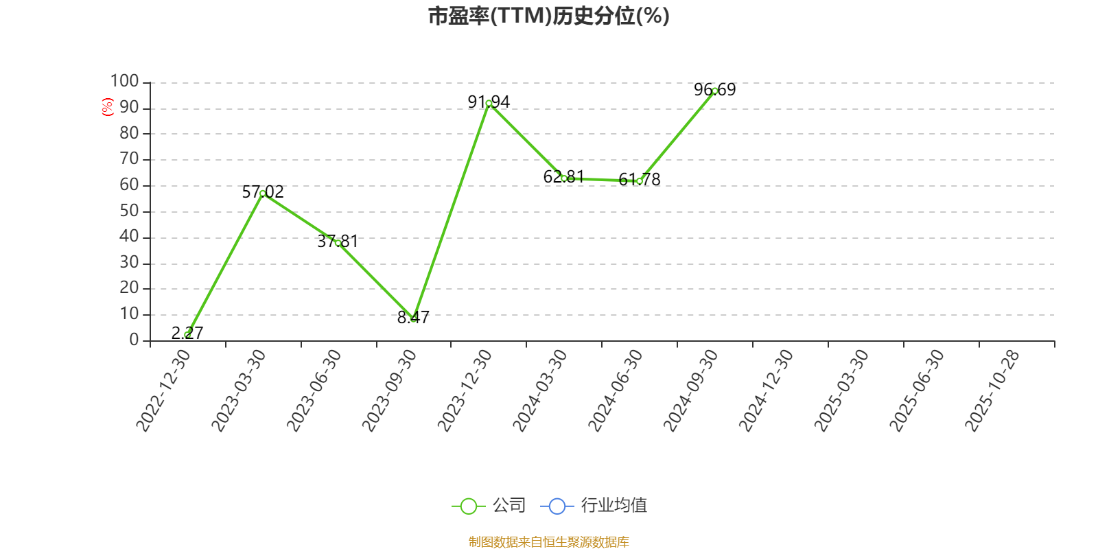 市盈率、市净率为负时,不显示当期分位数,会导致折线图中断。