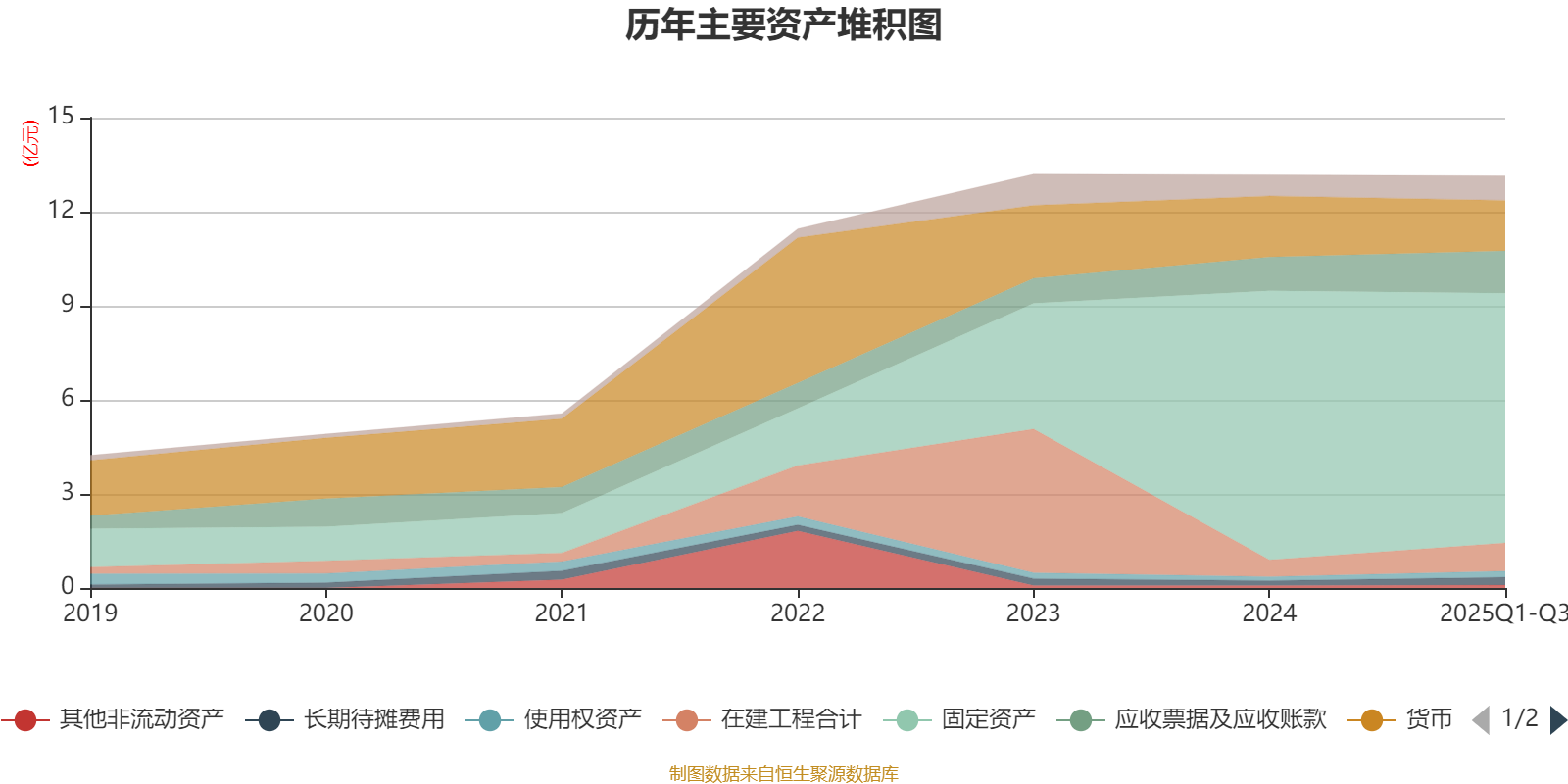 资产重大变化方面,截至2025年三季度末,公司固定资产较上年末减少7.18%,占公司总资产比重下降4.51个百分点;在建工程合计较上年末增加66.5%,占公司总资产比重上升2.75个百分点;货币资金较上年末减少17.3%,占公司总资产比重下降2.53个百分点;应收票据及应收账款较上年末增加25.54%,占公司总资产比重上升2.11个百分点。