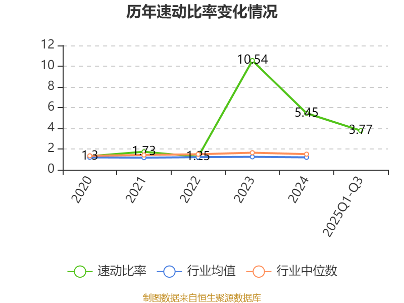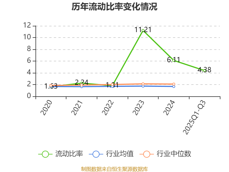 2025年前三季度,公司流动比率为4.38,速动比率为3.77。