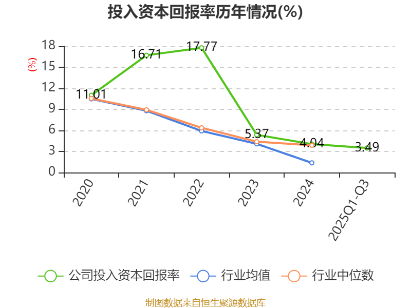 盈利能力方面, 2025年前三季度公司加权平均净资产收益率为3.79%,同比上升0.54个百分点。公司2025年前三季度投入资本回报率为3.49%,较上年同期上升0.53个百分点。