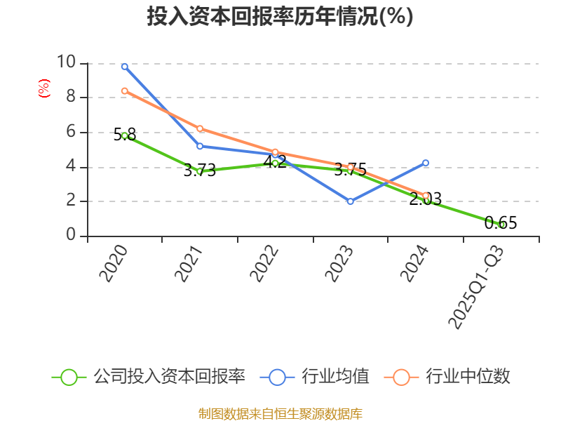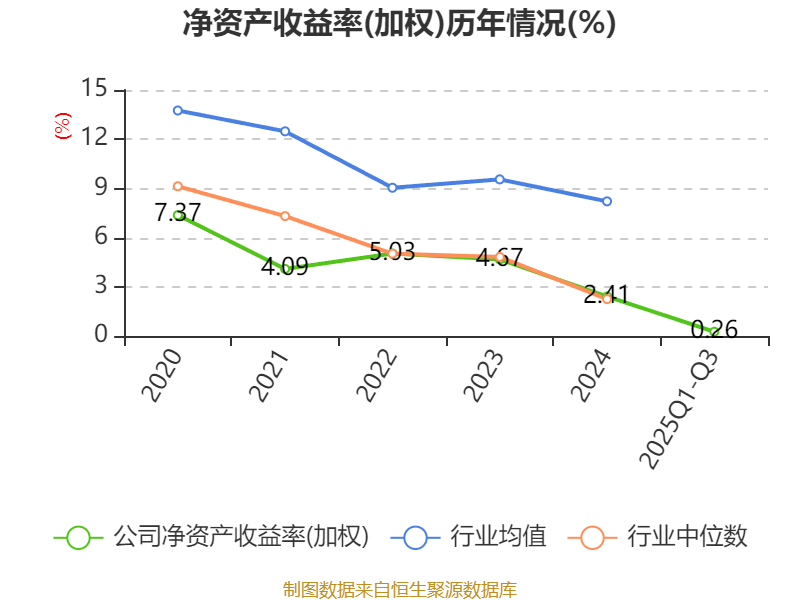盈利能力方面, 2025年前三季度公司加权平均净资产收益率为0.26%,同比下降2.24个百分点。公司2025年前三季度投入资本回报率为0.65%,较上年同期下降1.29个百分点。