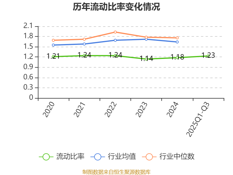 2025年前三季度,公司流动比率为1.23,速动比率为1.07。