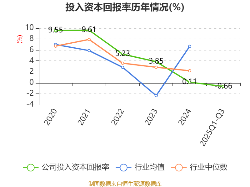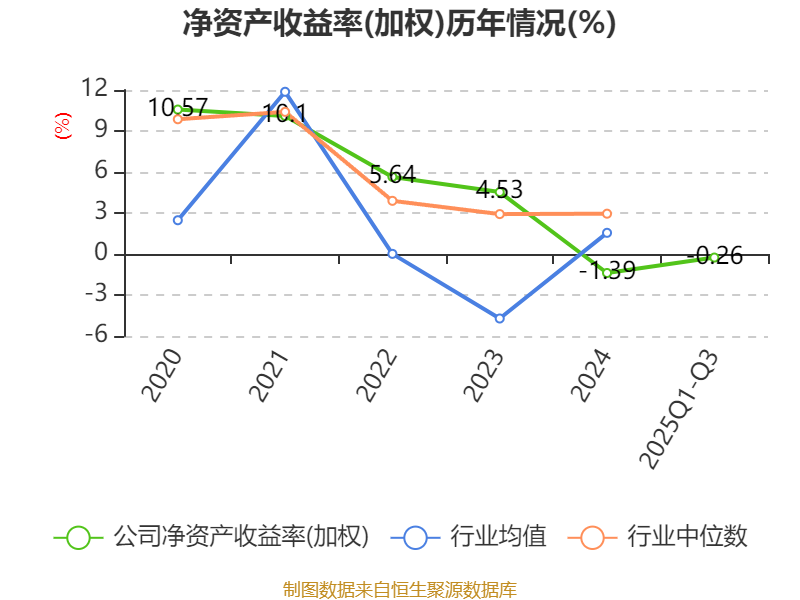 盈利能力方面, 2025年前三季度公司加权平均净资产收益率为-0.26%,同比下降1.12个百分点。公司2025年前三季度投入资本回报率为-0.66%,较上年同期下降1.49个百分点。