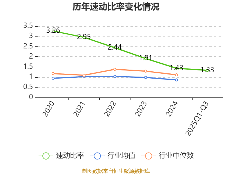 2025年前三季度,公司流动比率为1.66,速动比率为1.33。