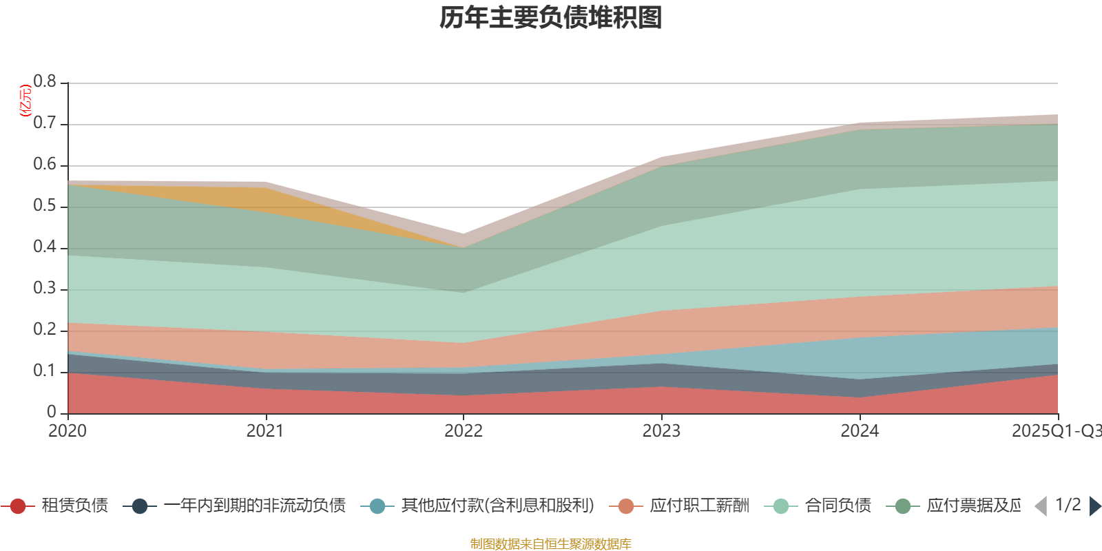 负债重大变化方面,截至2025年三季度末,公司租赁负债较上年末增加146.84%,占公司总资产比重上升1.69个百分点;一年内到期的非流动负债较上年末减少39.46%,占公司总资产比重下降0.54个百分点;其他应付款(含利息和股利)较上年末减少11.91%,占公司总资产比重下降0.39个百分点;合同负债较上年末减少1.99%,占公司总资产比重下降0.23个百分点。