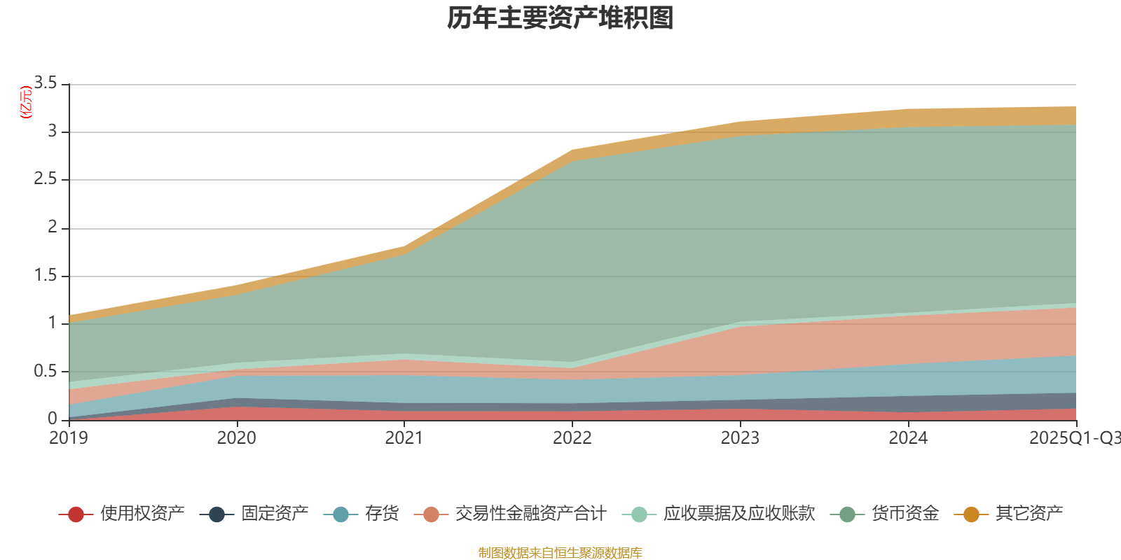 资产重大变化方面,截至2025年三季度末,公司货币资金较上年末减少3.93%,占公司总资产比重下降2.83个百分点;存货较上年末增加16.08%,占公司总资产比重上升1.56个百分点;使用权资产较上年末增加50.96%,占公司总资产比重上升1.21个百分点;其他流动资产较上年末减少44.15%,占公司总资产比重下降0.79个百分点。