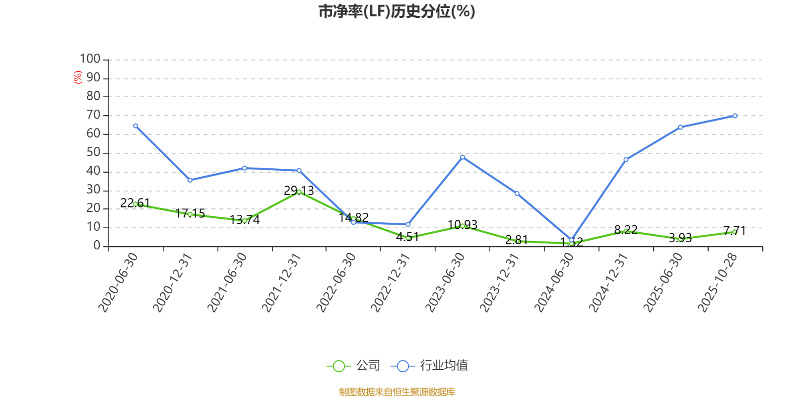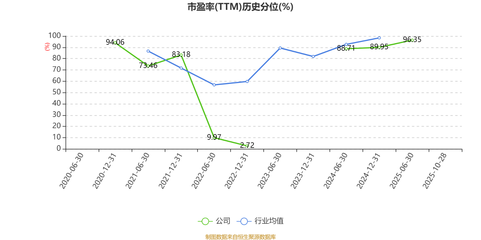 市盈率、市净率为负时,不显示当期分位数,会导致折线图中断。