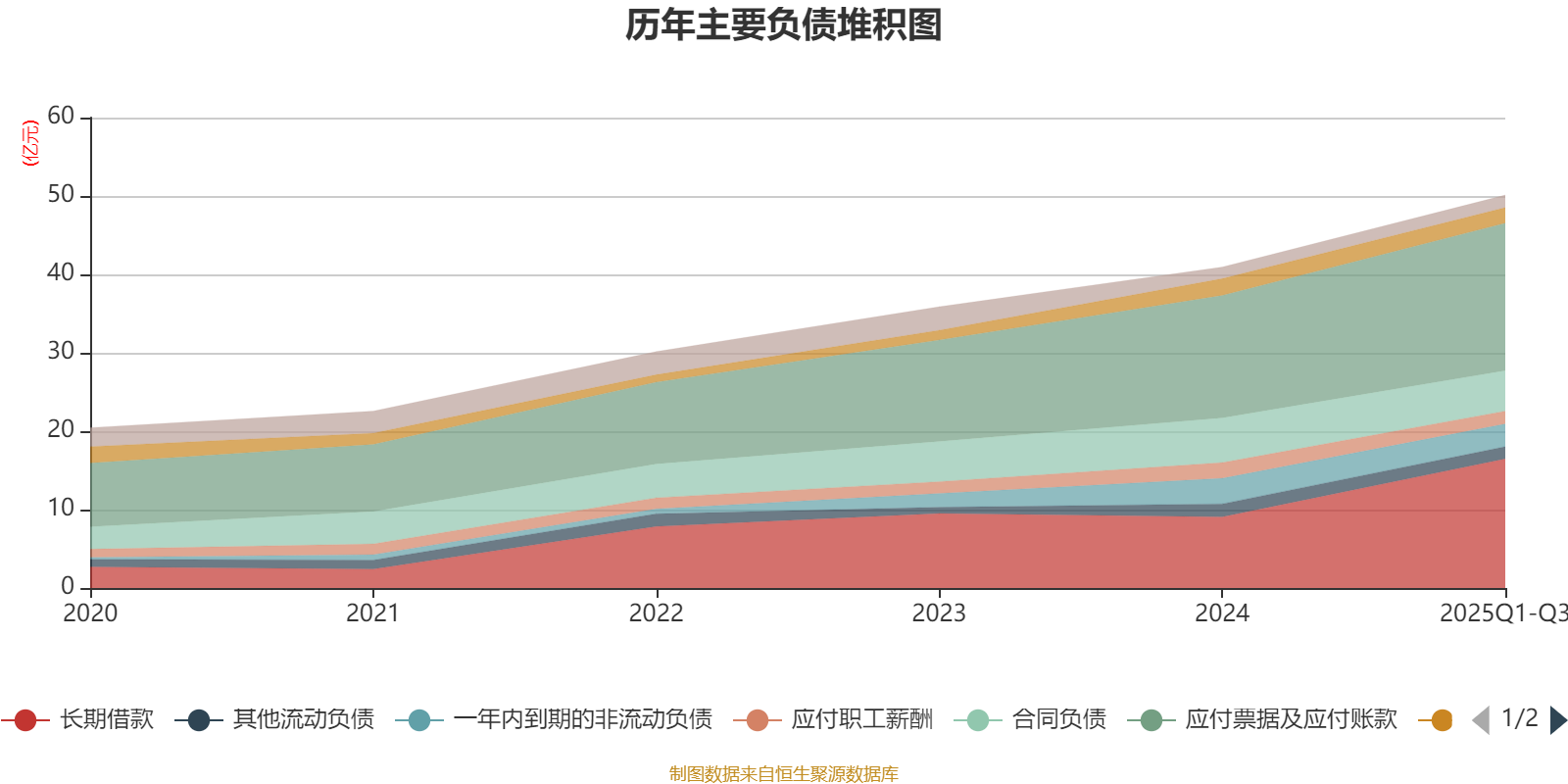负债重大变化方面,截至2025年三季度末,公司长期借款较上年末增加81.46%,占公司总资产比重上升7.48个百分点;合同负债较上年末减少9.4%,占公司总资产比重下降1.66个百分点;应付票据及应付账款较上年末增加20.43%,占公司总资产比重上升1.15个百分点;一年内到期的非流动负债较上年末减少11.13%,占公司总资产比重下降1.02个百分点。