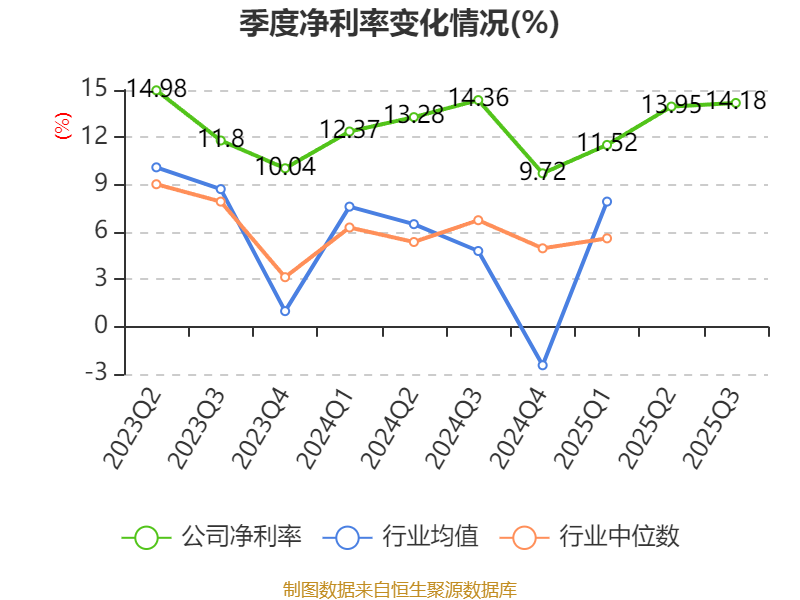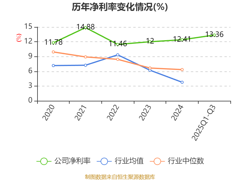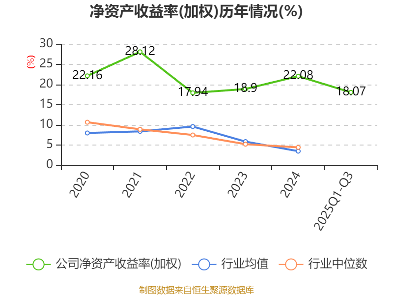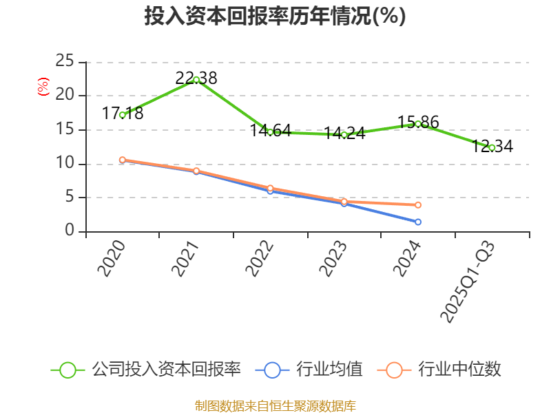 盈利能力方面, 2025年前三季度公司加权平均净资产收益率为18.07%,同比下降0.8个百分点。公司2025年前三季度投入资本回报率为12.34%,较上年同期下降0.18个百分点。