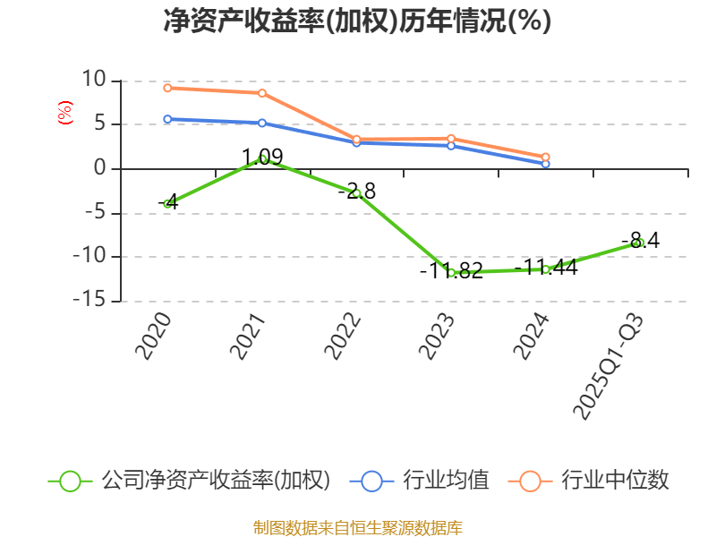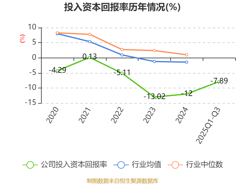 盈利能力方面, 2025年前三季度公司加权平均净资产收益率为-8.4%,同比下降3.43个百分点。公司2025年前三季度投入资本回报率为-7.89%,较上年同期下降2.61个百分点。